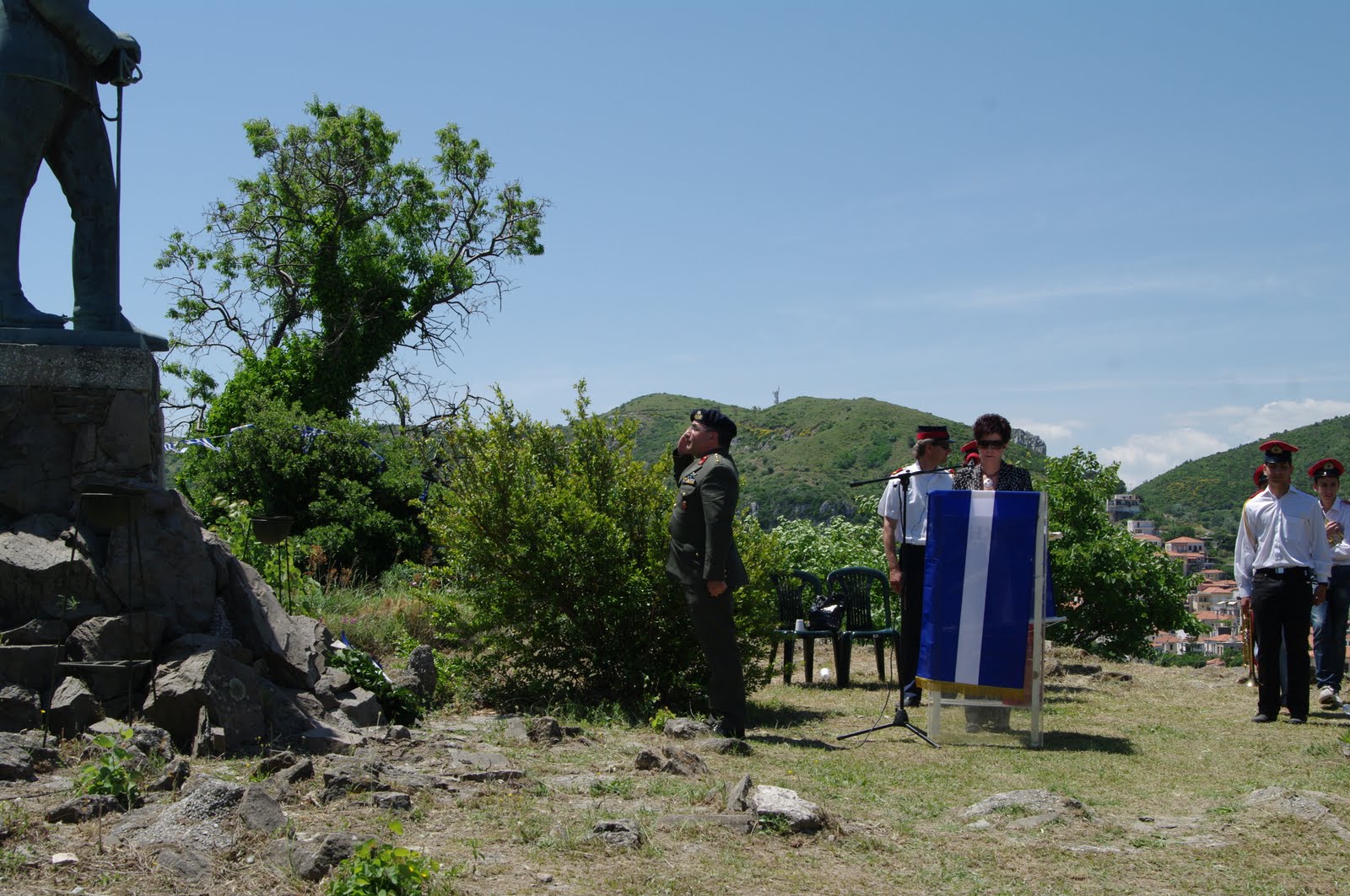 Τον πανηγυρικό εκφώνησε η κ. ΚομπορόζουΝία, ενώ τον ύμνο του Ήρωα, καθώς και άλλα τραγούδια απέδωσε η χορωδία των πρώην προσκόπων Χαλκίδας.